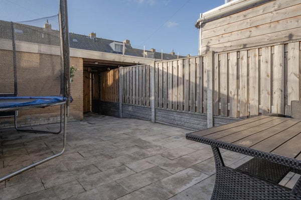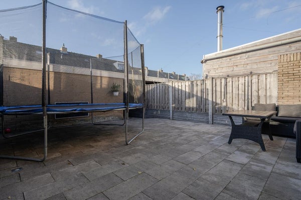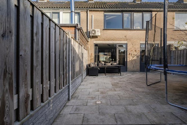 De achtertuin op het westen is onderhoudsvriendelijk, met een steenschuur en een overkapping voor fietsen. Een instapklare woning waar u zo uw meubels kunt neerzetten.