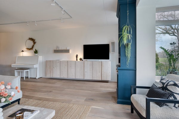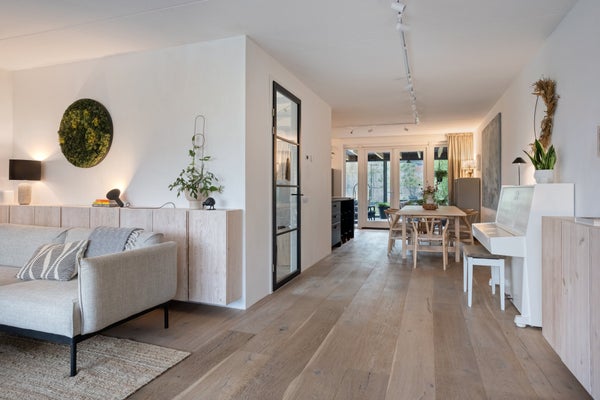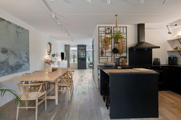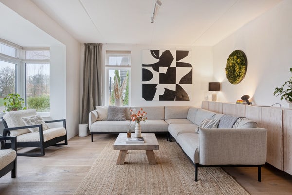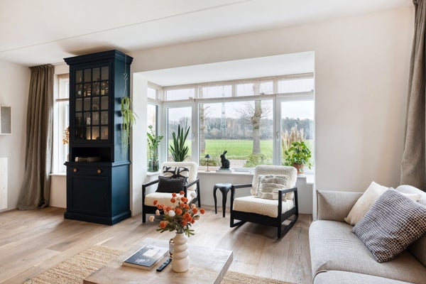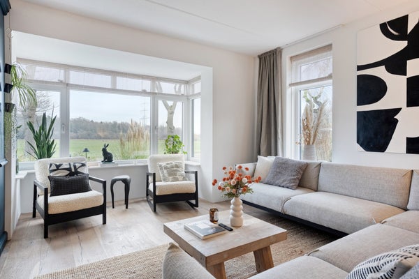 - Ruime, lichte woonkamer met erker en een grote moderne keuken vol comfort