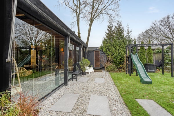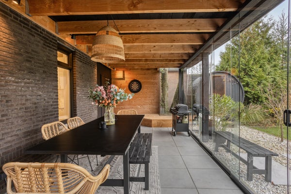 De woning beschikt over een brede en diepe tuin op het zuidwesten, waardoor u optimaal kunt genieten van zon en privacy. De royale overkapping vormt het hart van het buitenleven en is voorzien van een houtkachel, ideaal voor gezellige avonden, zelfs op koelere dagen. Daarnaast biedt de sauna (ter overname) luxe ontspanning aan huis. Deze riante tuin is perfect voor ontspanning, tuinfeesten of genieten met familie en vrienden, en vormt een natuurlijk verlengstuk van het comfortabele binnenleven. Dankzij de royale afmetingen en gunstige ligging biedt de tuin zowel rust als