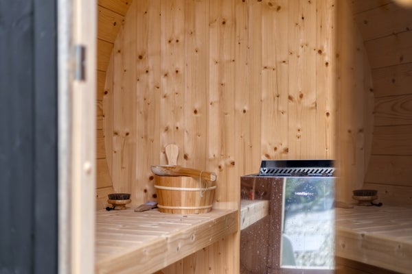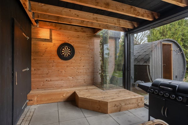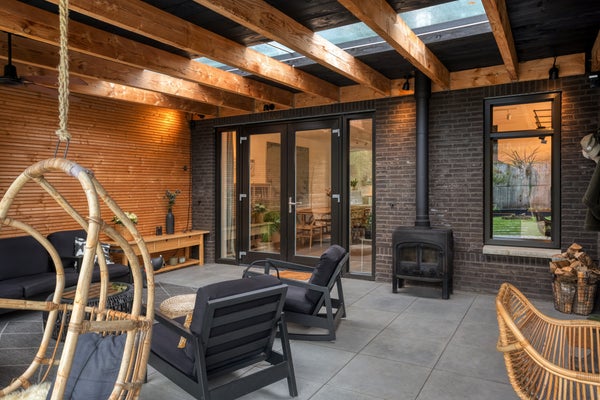 - Royale overkapping met houtkachel en sauna (ter overname), ideaal voor ultiem buitenleven