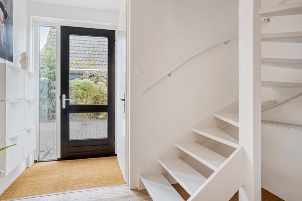 Bij binnenkomst in de entree en hal vindt u het toilet en de trapopgang naar de eerste verdieping. De ruime woonkamer is licht, sfeervol en voorzien van een houten vloer en erker, wat zorgt voor een prettig uitzicht en veel daglicht. De moderne keuken is volledig uitgerust met hoogwaardige inbouwapparatuur, zoals oven, combioven, vrijstaand inductie fornuis 100 cm en vaatwasser, en biedt toegang tot de bijkeuken en berging. Vanuit zowel de woonkamer als de keuken is er directe toegang tot de tuin met royale overkapping, waardoor binnen- en buitenleven perfect samenkomen.