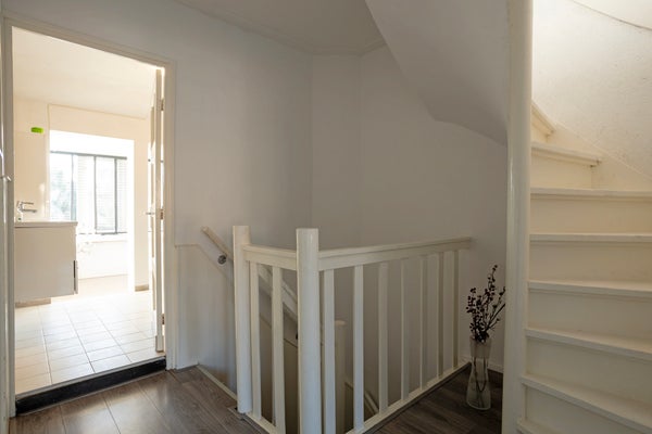 Bij binnenkomst valt meteen de vele en prettige lichtinval op. De woonkamer vormt het hart van het huis: een uitnodigende plek waar je heerlijk kunt ontspannen, dineren met vrienden of kunt genieten van een rustige avond. De open verbinding met de keuken zorgt voor een ruimtelijk gevoel en maakt het huis ideaal voor wie graag kookt en tegelijkertijd ook betrokken wil blijven bij het gezelschap in de kamer. De keuken zelf is nog origineel en is aan de achterzijde uitgebouwd. De keuken heeft hierdoor extra veel lichtinval verkregen. Mogelijkheid tot verdere uitbreiding van deze keuken.