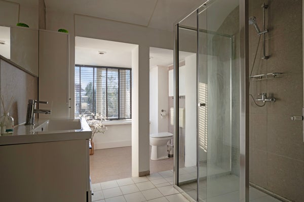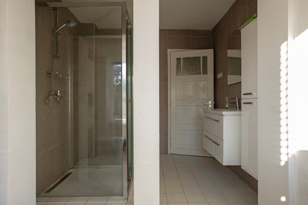 De badkamer is functioneel en verzorgd, met alles wat je nodig hebt voor een frisse start van de dag. Deze is in 2024 ook gerenoveerd en uitgebouwd en bevat daardoor extra veel ramen en daglicht.