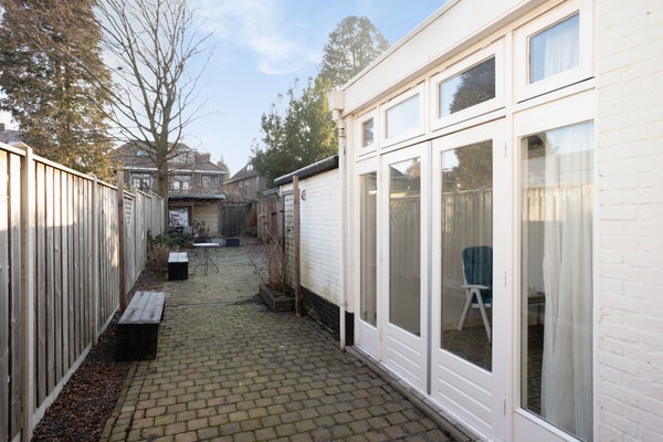 Achter het huis ligt een fijne, diepe, zonnige tuin waar je in alle rust kunt ontspannen en van de zon kunt genieten. Denk ook aan zomerse barbecues, een kop koffie in de ochtendzon of een speelplek voor kinderen. De tuin biedt privacy. is onderhoudsvriendelijk ingericht en heeft een achterom.