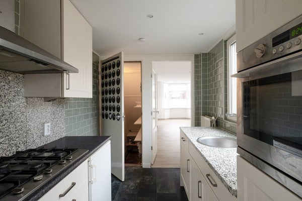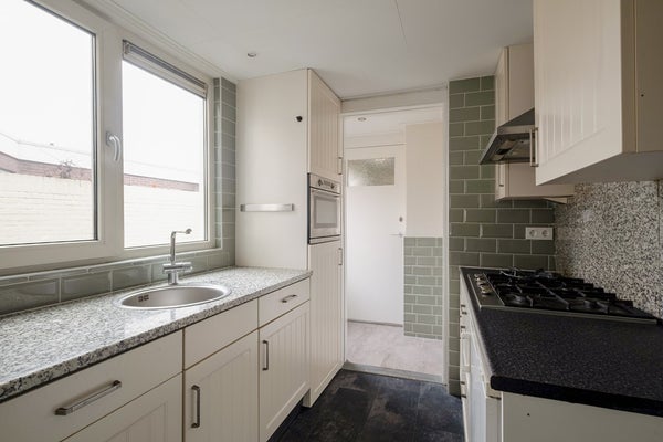 De semi-open keuken is voorzien van diverse inbouwapparatuur, waaronder een 5-pits gaskookplaat, combi-oven, koelkast, vriezer, vaatwasser en afzuigkap. Praktisch ingedeeld en klaar voor dagelijks gebruik.