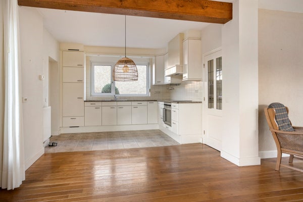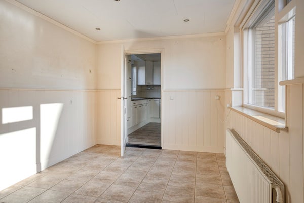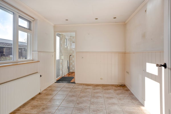 Achter de keuken bevindt zich de ruimte die op veel manieren is in te richten, bijvoorbeeld als werkruimte.