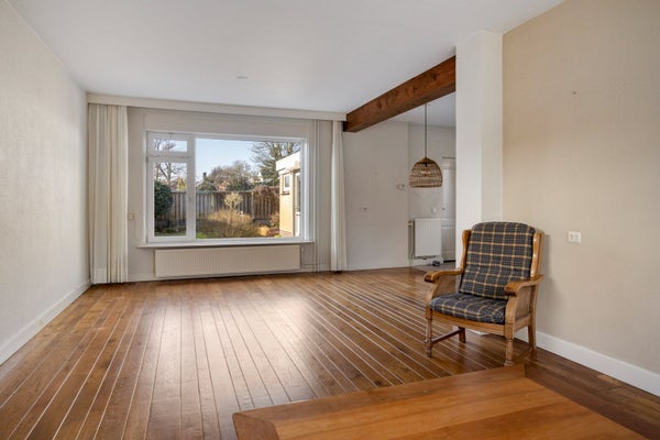 De woonkamer heeft grote ramen aan zowel de voor- als achterzijde waardoor er meer dan voldoende daglicht binnenkomt.