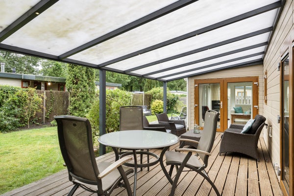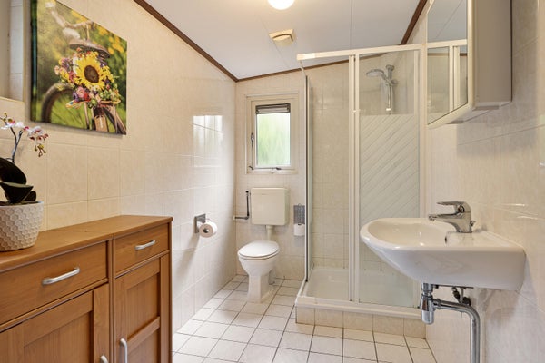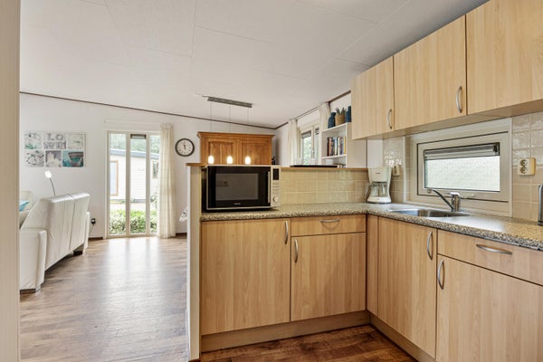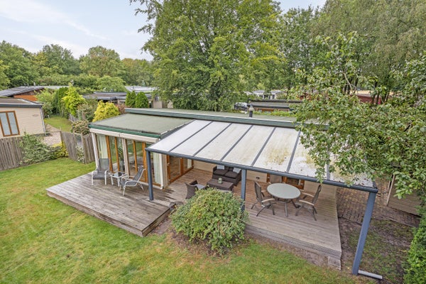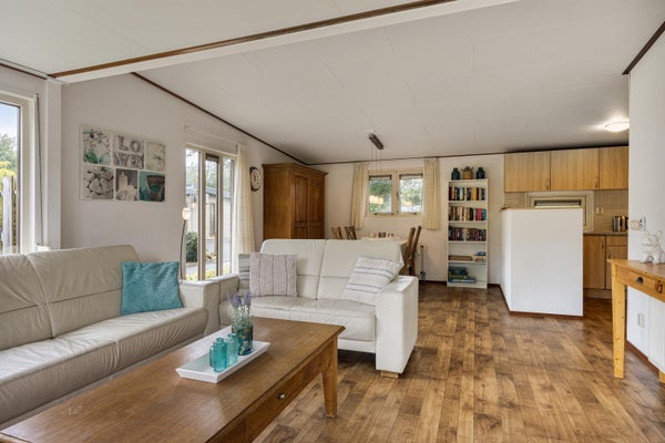 Met een ruime tuin, volledig omheind voor privacy, en een grote overkapping is het ideaal voor gezinnen. De indeling omvat een entree met toegang tot een badkamer, twee slaapkamers, en een open leefruimte met een lichte keuken en een gezellig zitgedeelte. Er zijn voldoende faciliteiten in de buurt en het park heeft een actieve vereniging van eigenaren.