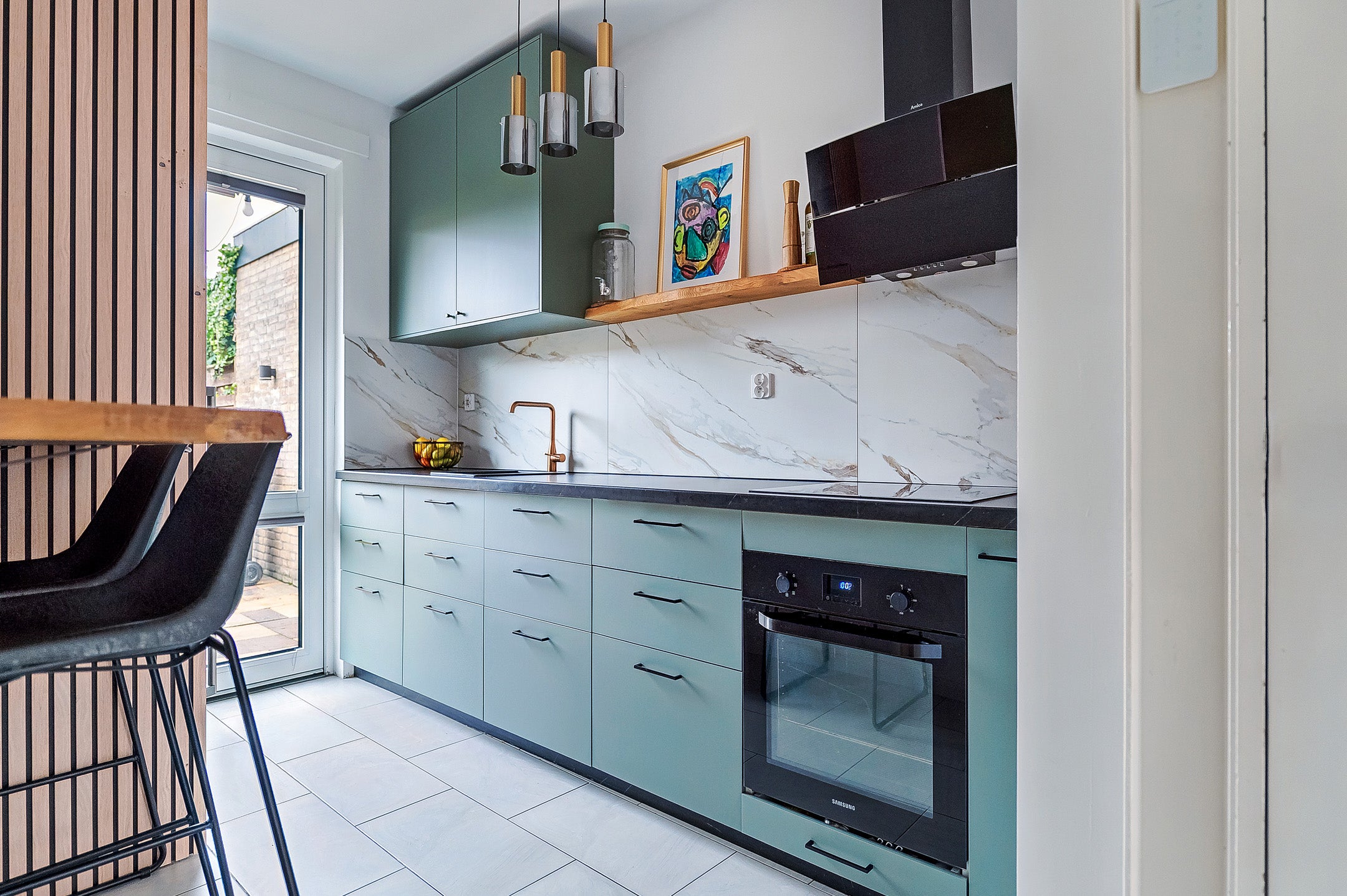 Op de begane grond vind je de hal met een modern toilet, meterkast, en praktische voorraadkast. De halfopen keuken (2022) is voorzien van inbouwapparatuur en heeft toegang tot de tuin. De lichte woonkamer heeft openslaande deuren naar de tuin. De achtertuin van circa 10 meter biedt zon en schaduw, met een berging achterin.
