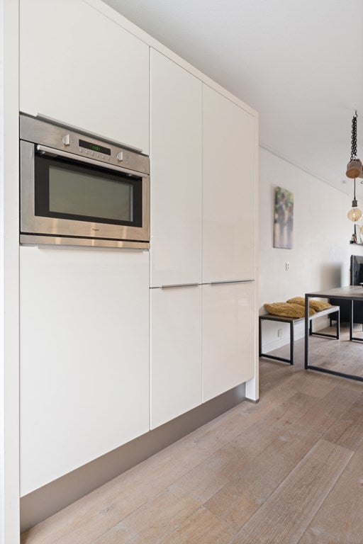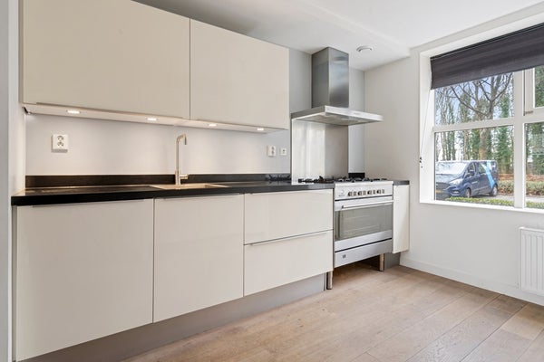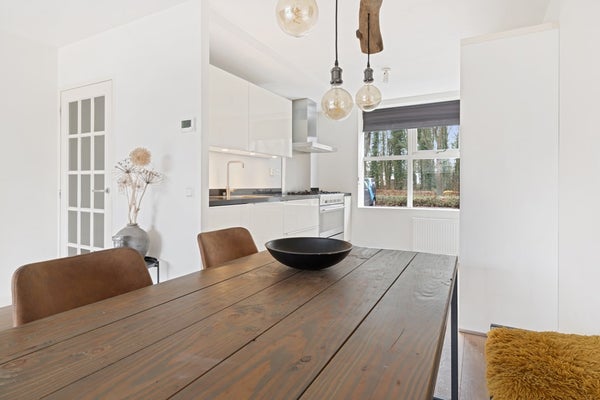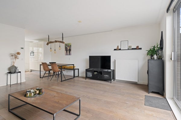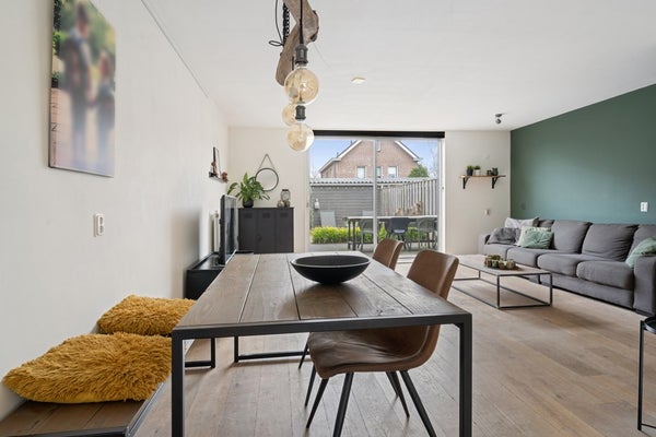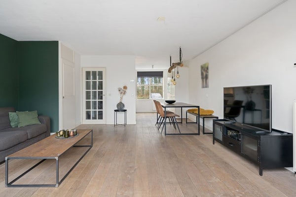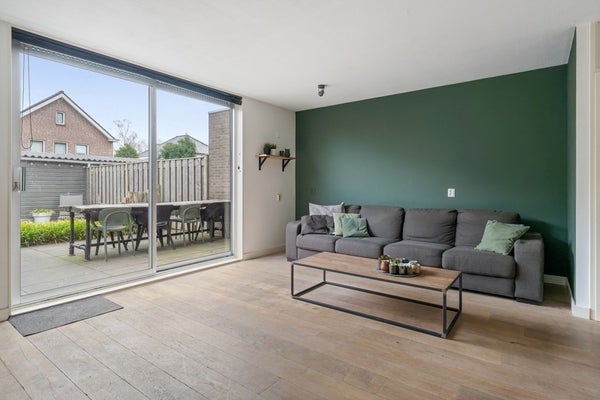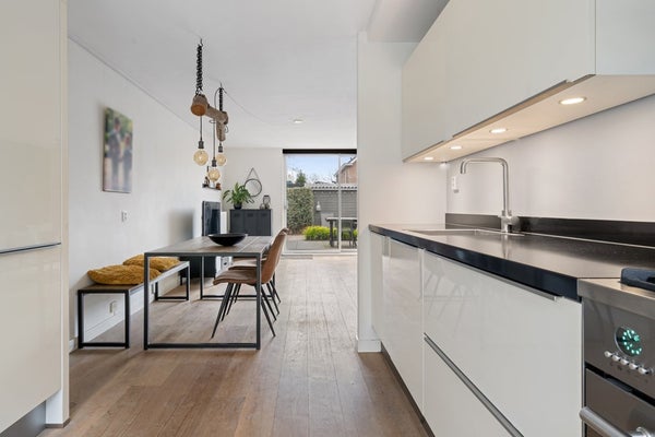 Zodra je binnenstapt, valt meteen het licht en de warme sfeer van de woonkamer op. Dankzij de houten vloer en de vloerverwarming is het altijd behaaglijk – zomer én winter. Hier kun je lekker borrelen met vrienden of na een lange dag uitgebreid relaxen met het gezin op de bank. En die schuifpui? Die zet je zo open naar de achtertuin. Ideaal om je woonkamer op mooie dagen moeiteloos met buiten te verbinden.