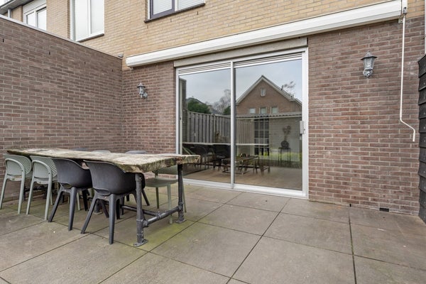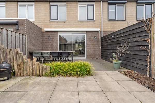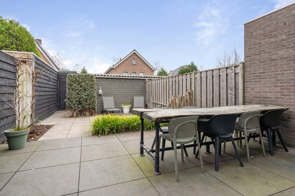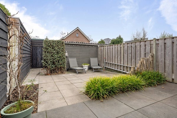 De zonnige achtertuin is dé plek om te ontspannen. Er is genoeg ruimte voor een grote tafel, of een trampoline. En even praktisch: via de achterom loop je zo met de fiets naar binnen of naar buiten. Geen gesjouw door het huis! Achterin de tuin staat een ruime berging, ideaal voor de fietsen, tuinspullen of gewoon wat extra opslag.