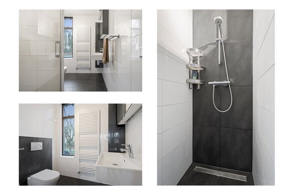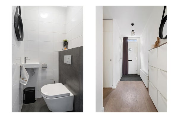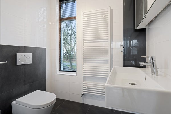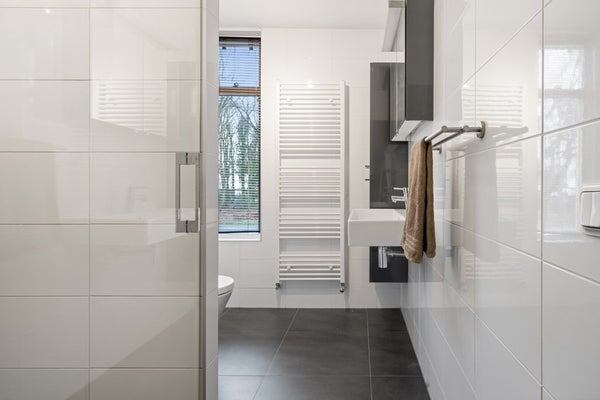 Op de eerste verdieping vind je drie fijne slaapkamers – perfect voor een masterbedroom, kinderkamers of misschien een thuiswerkplek. Ook de badkamer is slim ingedeeld met een douche, modern wastafelmeubel en natuurlijk een tweede toilet. Alles netjes en functioneel afgewerkt; je kunt er zo in.