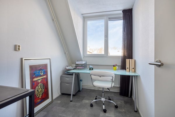 De perfecte thuiswerkkamer, welke aan de achterzijde van de woning is gelegen. Ook hier zorgt het dakkapel voor veel daglicht en ruimte. Wil je een extra slaapkamer? Dan is dit ook zeker een prima kinderslaapkamer, of voor de shoppers onder ons een walk-in-closet. Het rolluik zorgt voor verduistering.