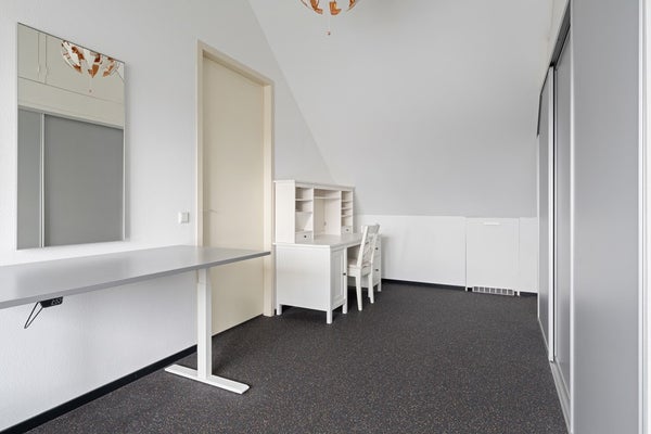Nog even kijken op de tweede verdieping: wat een zee van ruimte! Of je nu een thuiskantoor, sport-/speelkamer of gewoon nóg een slaapkamer nodig hebt – het kan allemaal. De zolder is royaal opgezet met een grote dakkapel, kunststof kozijnen én elektrisch rolluik, en een royale inbouwkast. Een praktische voorzolder biedt extra opbergruimte voor de spullen die je niet elke dag nodig hebt.