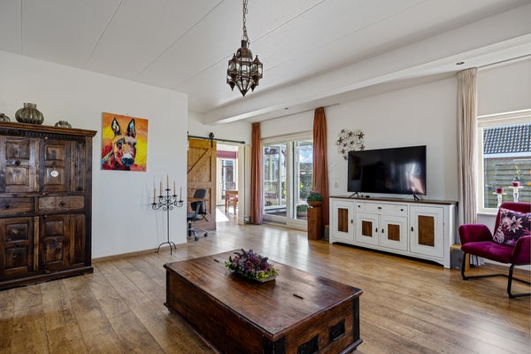 Deze royale, vrijstaande woning is gelegen aan de rand van het dorp aan een rustige, niet-doorgaande weg met uitzicht op de Noorderesch. Het perceel beslaat ca. 568m² en beschikt over een eigen oprit en een zongerichte tuin. De woning is voorzien van HR++ beglazing en heeft muur- en dakisolatie, wat resulteert in energielabel B dankzij zonnecollectoren die het energieverbruik verlagen. De achtertuin biedt een terras met overkapping en een ruime, aangebouwde stenen garage.