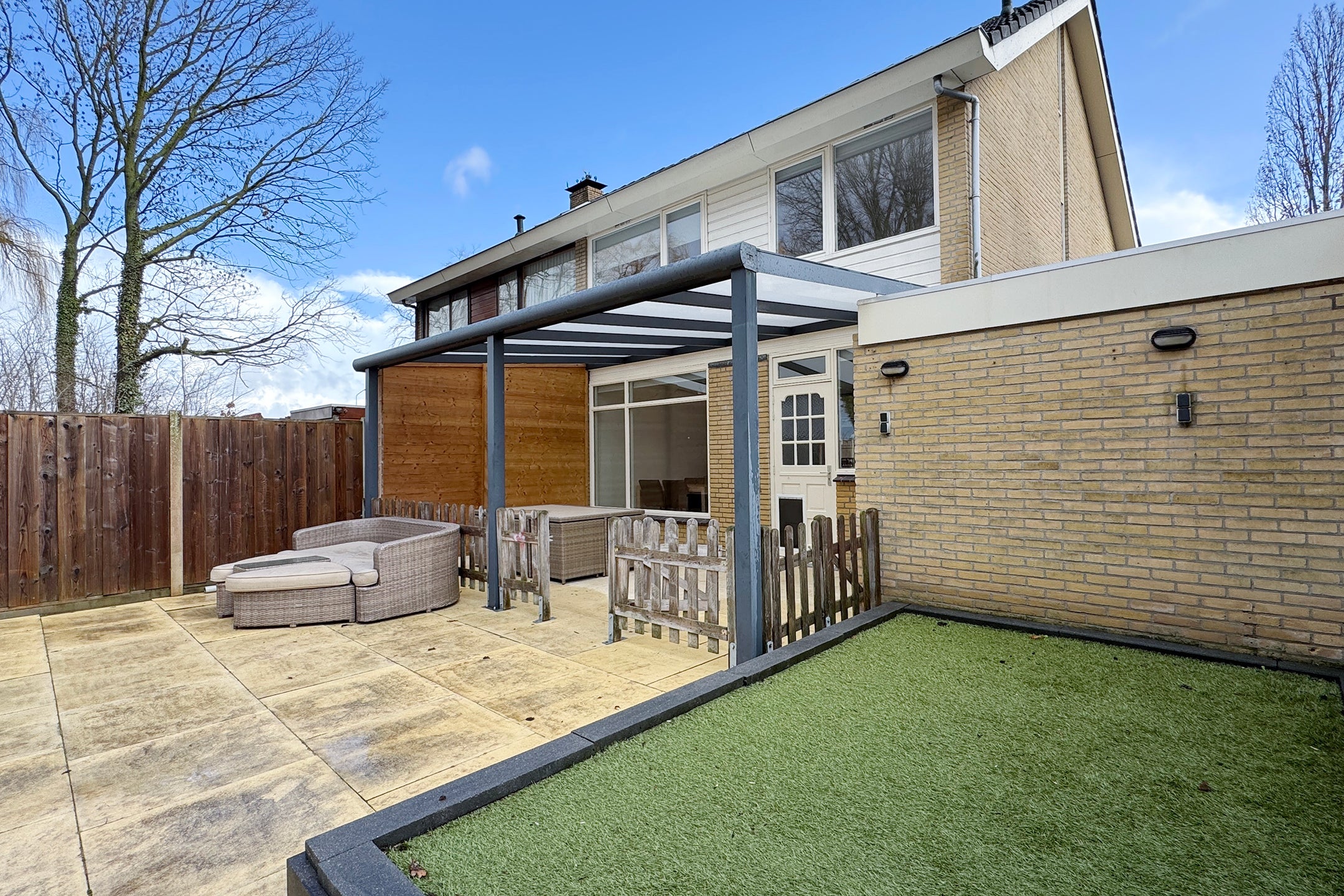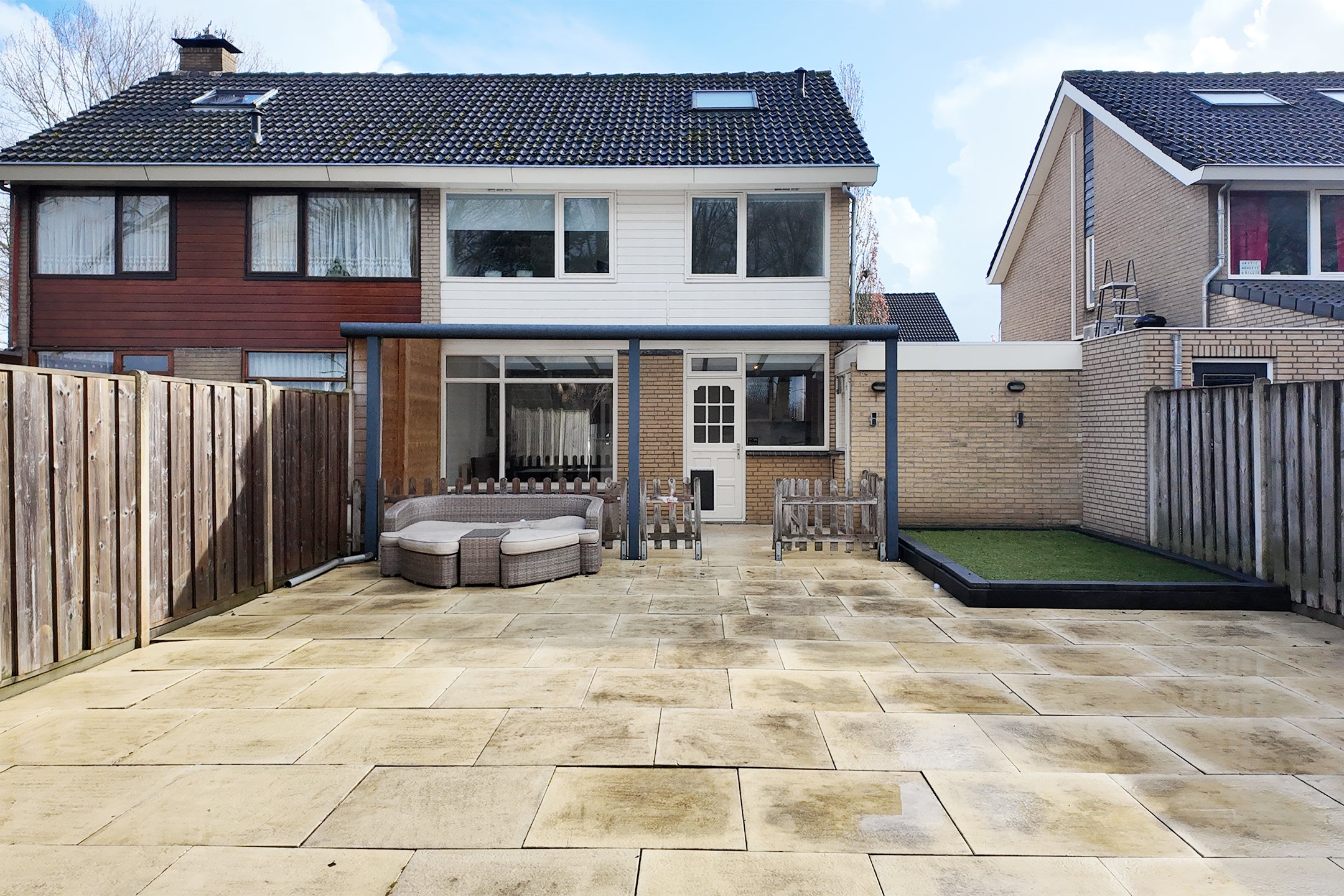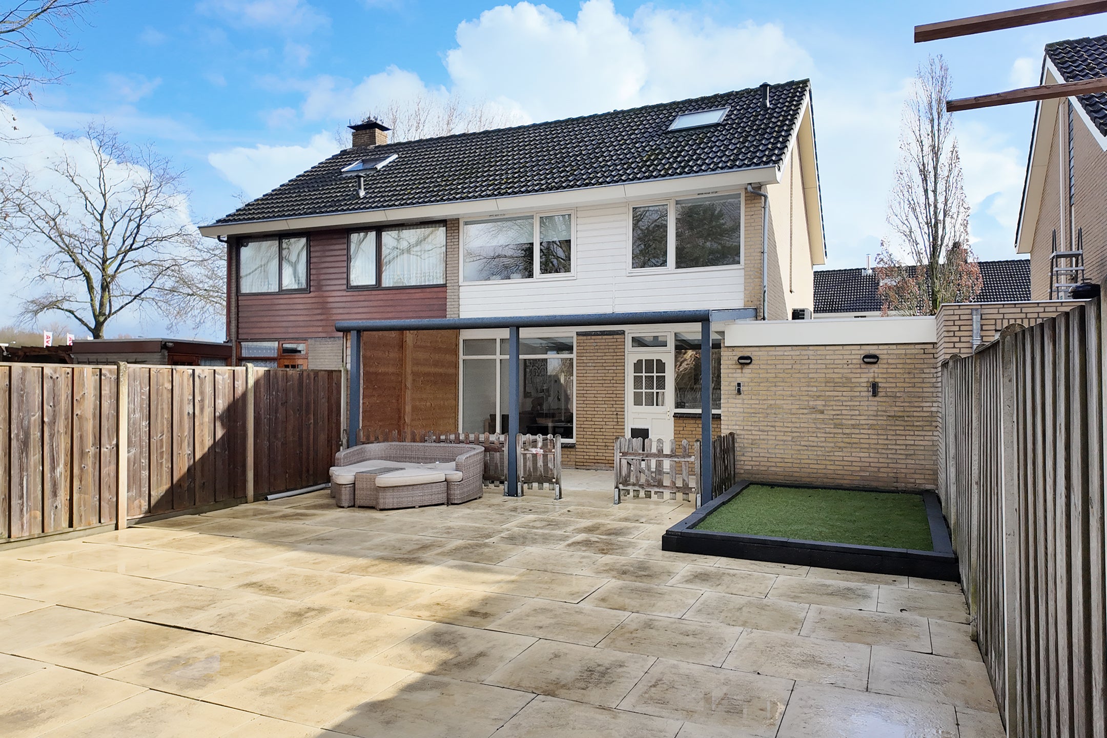 In deze goed onderhouden 2-1 kapwoning, gelegen in een rustige woonwijk, geniet je van een lichte woonkamer en een praktische tuingerichte leefkeuken. Deze woning heeft vier slaapkamers en een royale badkamer. De riante achtertuin biedt een mooi uitzicht over het park met watergang en een grote overkapping maakt buiten zitten mogelijk, ongeacht het weer. Via de overkapping bereik je de garage en de oprit biedt parkeergelegenheid op eigen terrein.