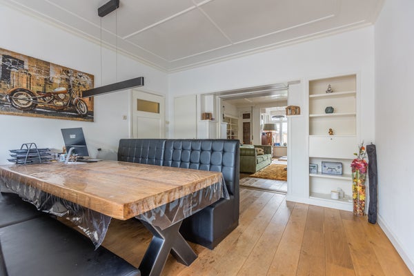 In het centrum van Fijnaart presenteren we u deze riante geschakelde woning van circa 241 m², gebouwd in 1935, met een inhoud van ongeveer 915 m³. De woning heeft authentieke kenmerken, waaronder een indrukwekkende voorgevel met glas-in-loodramen. Binnen vindt u een ruime hal met terrazzo vloer, een gezellige eetkamer en een sfeervolle woonkamer met inbouwkasten. De gesloten keuken biedt zicht op de achtertuin, die onderhoudsvriendelijk is ingericht met overkappingen en een houten berging. De woning beschikt over vijf slaapkamers, een badkamer en een zeer ruime zolder van 52 m², perfect voor vele doeleinden. De diepe achtertuin geeft ruimte voor buitenplezier, terwijl u in de buurt openbare parkeergelegenheid vindt.