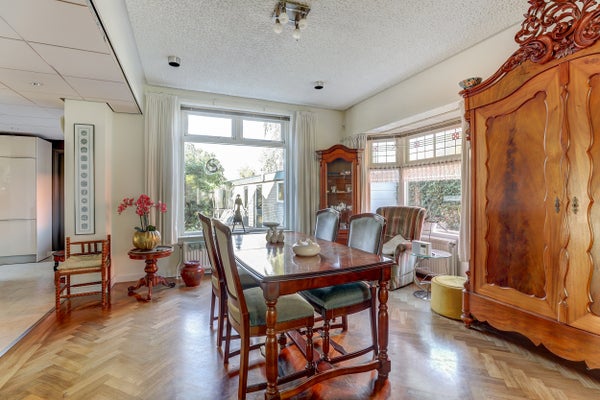 In de brede Hertog van Saxenlaan in Franeker staat deze ruime vrijstaande woning uit de jaren '30. Oorspronkelijk twee woningen, biedt het nu een grote leefruimte en een verzorgde tuin met veel privacy, een garage en een fietsenberging. Er is voldoende parkeergelegenheid voor meerdere voertuigen op de eigen oprit. De karakteristieke erkers, het dakoverstek en de glas-in-loodramen brengen de sfeer van de dertiger jaren.extra