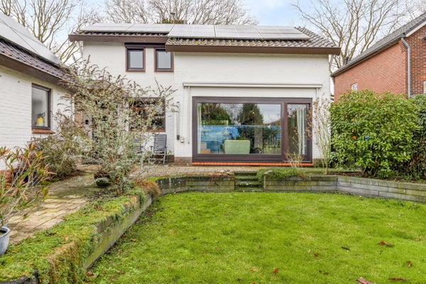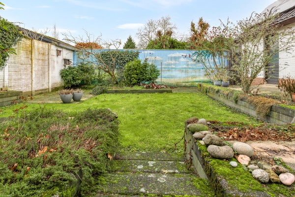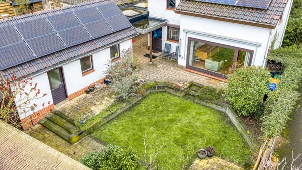 BUITENLEVEN! Stap naar buiten en je begrijpt het meteen: dit is niet zomaar een tuin, dit is een verlengstuk van je woonplezier. Een vrije achtertuin waar stilte en privacy vanzelfsprekend zijn en waar de zon gul haar werk doet. Hier ontstaat moeiteloos een royaal terras voor lange zomeravonden, een speelplek vol avontuur of zelfs die stijlvolle overkapping waar je stiekem al van droomde. Zodra het voorjaar zich aandient, zit je hier al heerlijk buiten en door de gunstige zonligging vangen de panelen ondertussen trouw hun portie mee. Ook aan praktisch comfort is gedacht. De vrijstaande garage biedt alle ruimte voor je fietsen, collectie gereedschap en de uitgestelde plannen die hier eindelijk werkelijkheid mogen worden. Klussen aan je oldtimer is straks een peulenschil met de smeerput die er te vinden is. Als laatste bekijken we de ruime bijkeuken met spoelbak en genoeg ruimte voor al je witgoed. Boven de garage wacht nog een verrassend ruime zolder voor extra bergruimte.