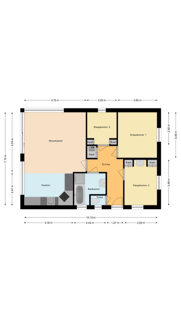 - De vrijstaande woning heeft een woonoppervlakte van 72 m² en beschikt over 4 kamers, waarvan 3 slaapkamers;