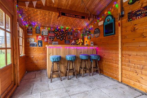 Onder de fraaie overkapping aan de achterzijde is het heerlijk genieten van het buitenleven met uitzicht over de nieuw aangelegde tuin!