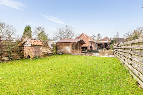 Sfeervolle, goed onderhouden vrijstaande woning met oprit, ruime vrijstaande garage, grote carport, royale overkapping, tuinhuis en fraaie nieuw aangelegde tuin! De woning is levensloopbestendig d.m.v. een slaapkamer en badkamer op de begane grond.