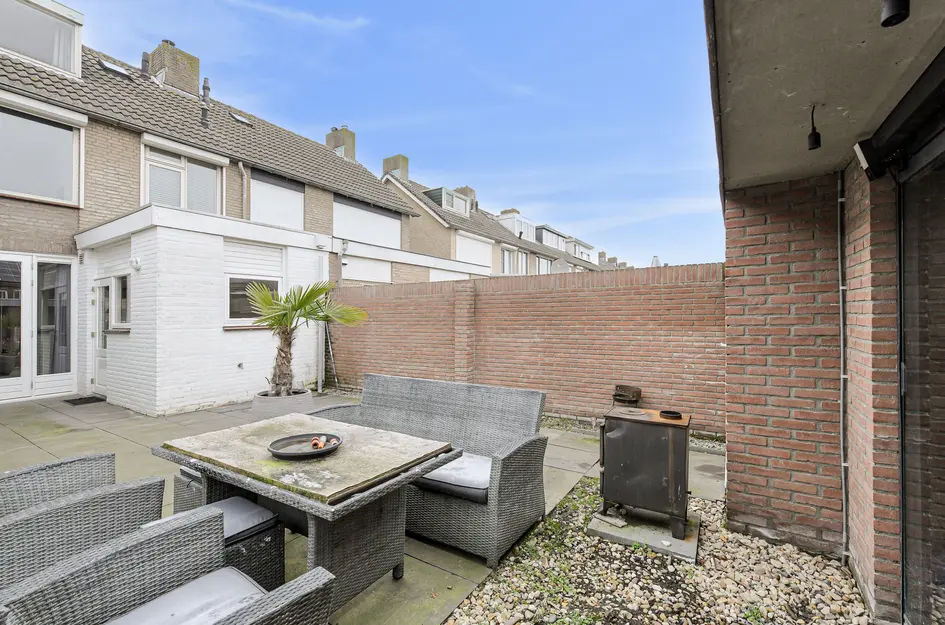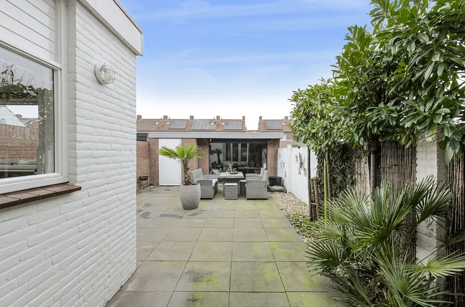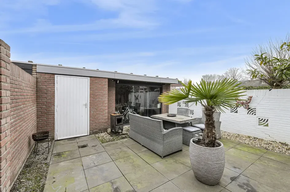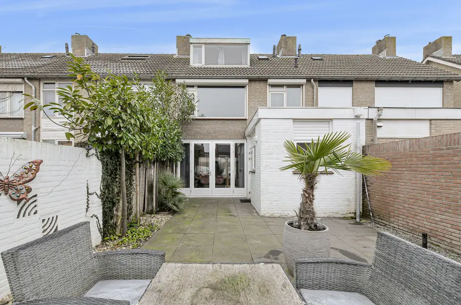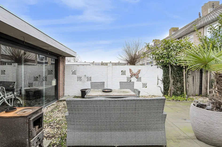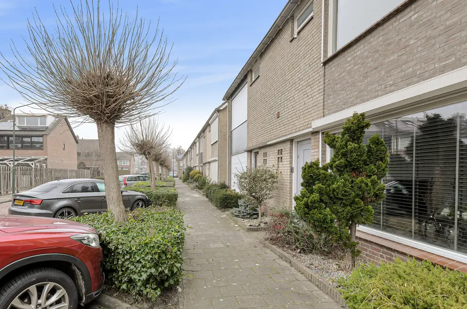 Deze uitgebouwde tussenwoning ligt in een kindvriendelijke buurt, op loopafstand van scholen, een kinderboerderij en een winkelcentrum. Gebouwd in 1969 biedt de woning een woonoppervlakte van 100m2 en een perceel van 142m2. De indeling omvat een entreehal met plavuizenvloer en een L-vormige woonkamer van 29m2 met openslaande tuindeuren. De semi-open keuken is voorzien van moderne apparatuur. Achterin de tuin, die op het oosten ligt en een terras heeft, bevindt zich een royale berging met overkapping. Op de eerste verdieping zijn drie slaapkamers en een badkamer aanwezig. De tweede verdieping is toegankelijk via een vaste trap en beschikt over een slaapkamer met dakkapel. Verwarming en warmwater worden geregeld met een HR-combi-ketel uit 2014. Er zijn voldoende parkeerplaatsen in de omgeving.