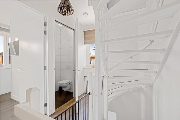 Vanaf de overloop zijn twee slaapkamers, een apart toilet en de badkamer te bereiken. De slaapkamers zijn ruim opgezet en hebben een strakke afwerking. Daarnaast beschikt de slaapkamer aan de achterkant over een luxueuze inloopkast. De badkamer is modern, voorzien van vloerverwarming en is uitgerust met een designradiator, inloopdouche, dubbele wastafel en ligbad.