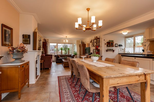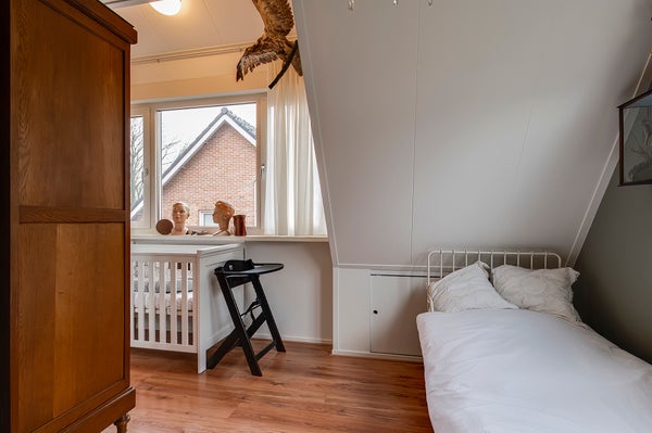 Dit karaktervolle huis staat op een royaal perceel van 801 m² in een rustige, kindvriendelijke woonomgeving. Gebouwd in 1984, biedt het huis een nette afwerking en goede voorzieningen. De hal leidt naar een ruime woonkamer van meer dan 38 m², met open keuken en dubbele openslaande deuren naar de zonnige achtertuin. De keuken is volledig uitgerust met moderne inbouwapparatuur. Op de eerste verdieping bevinden zich drie slaapkamers en een neutraal ingerichte badkamer. De zolder biedt bergruimte en de mogelijkheid voor een extra kamer. Buiten vindt u een verzorgde tuin met een groot terras en een ruime robuuste tuinoverkapping. Voor de garage zijn er parkeermogelijkheden op eigen terrein. Kortom, een ideaal gezinshuis met veel comfort en ruimte.
