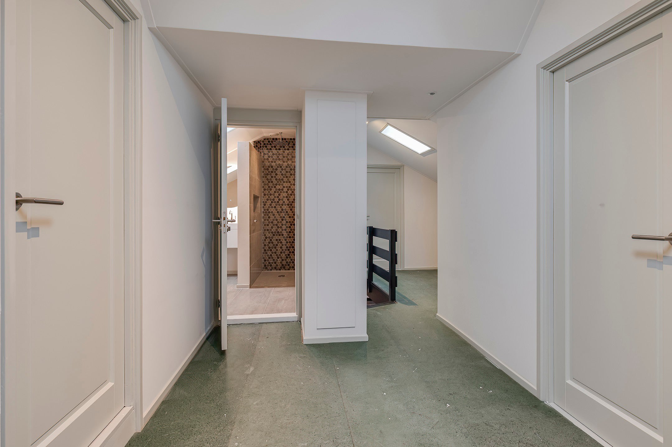 De begane grond heeft een royale hal die toegang geeft tot een moderne toiletruimte en een sfeervolle woonkeuken. Deze is uitgerust met diverse inbouwapparatuur en biedt toegang tot de tuin. De woonkamer van meer dan 30 m² heeft uitzicht op de tuin. Op de verdieping bevinden zich drie slaapkamers en een moderne badkamer met inloopdouche en dubbele wastafel. De tuin, gelegen op het zuiden, biedt mogelijkheden voor een gezellige buitenruimte. Dit huis is een plezierige plek om te wonen en op te groeien.