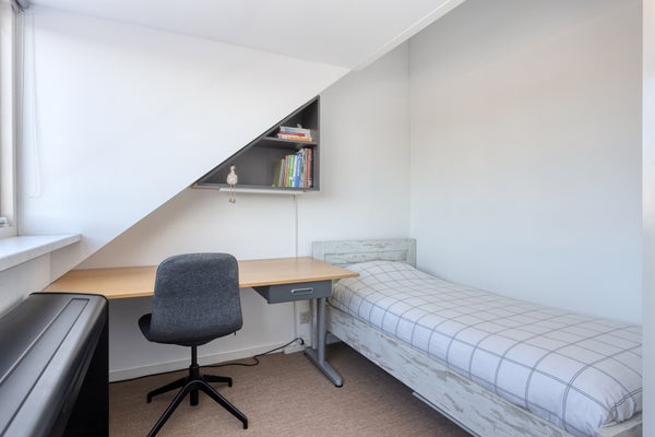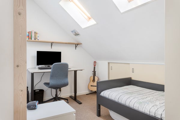 - De tussenwoning heeft een woonoppervlakte van 128 m² en beschikt over 6 kamers, waarvan 5 slaapkamers;