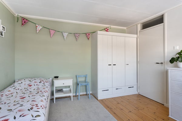 Met 128 m² woonoppervlakte is er aan ruimte geen gebrek. De indeling bestaat uit een entree, hal met toilet, en een eerste verdieping met 3 slaapkamers en een badkamer. De tweede verdieping biedt 2 extra slaapkamers.