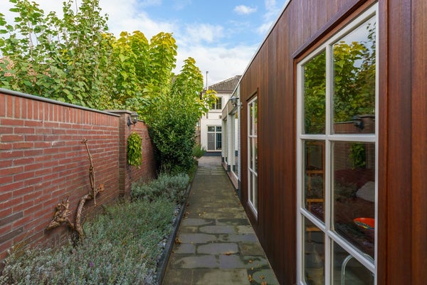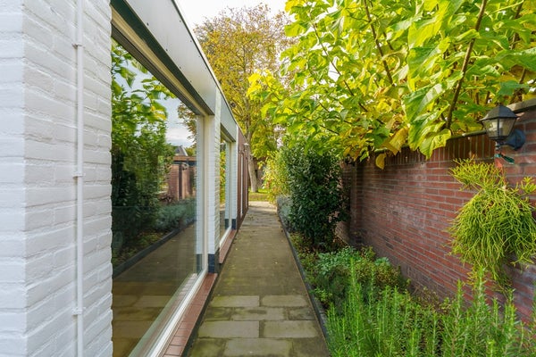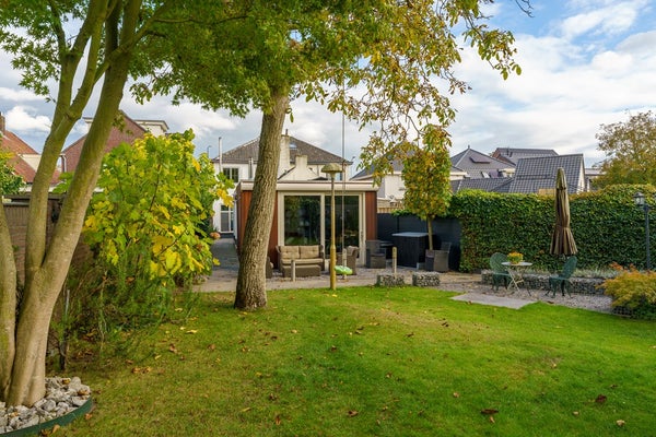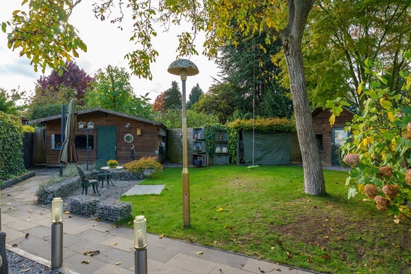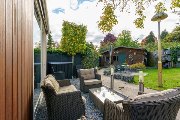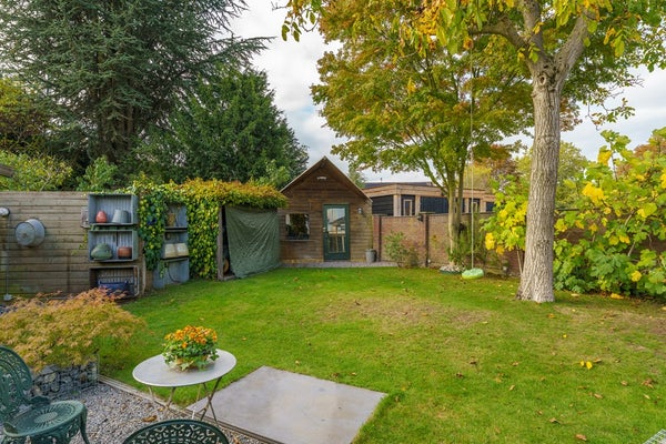 De woning beschikt over een ruime voortuin op het oosten en een diepe achtertuin op het westen, waar je volop kunt genieten van de middag- en avondzon. De tuin is verzorgd en biedt veel privacy. Achterin de tuin staan twee vrijstaande houten schuren, ideaal voor het opbergen van tuingereedschap, fietsen of extra opslagruimte.