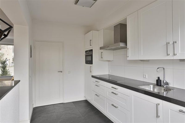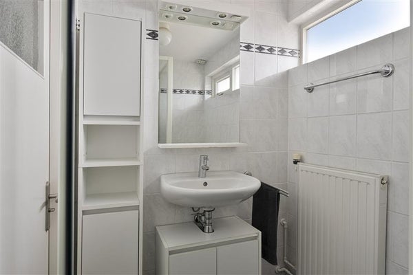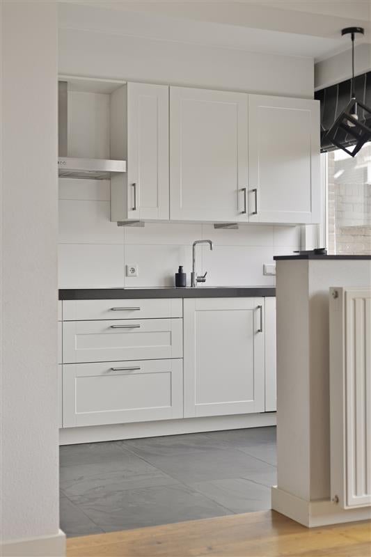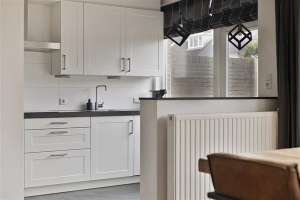 Aan de achterzijde van de woonkamer ligt de open keuken, een plek waar functionaliteit en stijl samenkomen. De eigentijdse inbouwapparatuur – denk aan een combi-oven, vaatwasser, koelkast en inductieplaat – maakt het bereiden van je favoriete gerechten een feestje. Of je nou een snelle doordeweekse maaltijd maakt of een uitgebreid diner organiseert, hier kook je in stijl. Vanuit de keuken loop je zo de onderhoudsvriendelijke achtertuin in, die niet alleen een oase van rust is, maar ook een heerlijke plek om lange zomeravonden door te brengen. Stel je eens voor: de barbecue aan, een glas wijn in de hand en genieten van de ondergaande zon op je westelijk gelegen terras.