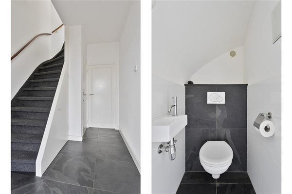 Stap binnen in de hal van deze woning en voel direct de sfeer van een plek die je omarmt. Hier tref je een keurig toilet, de meterkast en toegang tot een royale woonkamer. De grote ramen laten het daglicht rijkelijk binnenstromen, terwijl de neutrale vloer en strakke wanden zorgen voor een tijdloze uitstraling. Zie je jezelf al op een zondagochtend genieten van een kopje koffie terwijl de ochtendzon via het raam naar binnen piept?