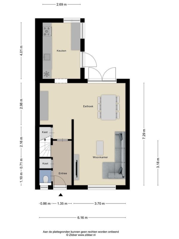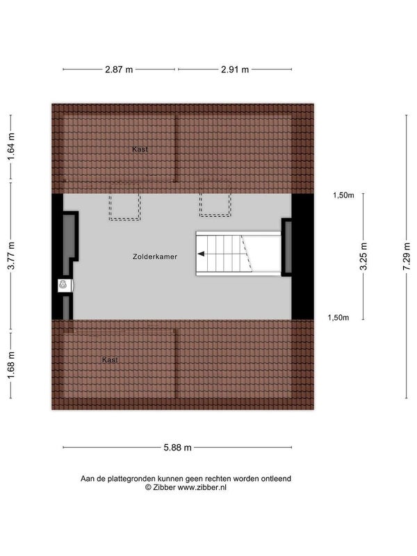 - Aanwezig (54 m², gelegen op het zuidwesten)