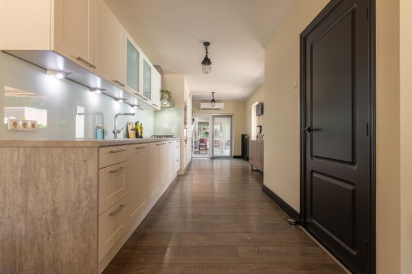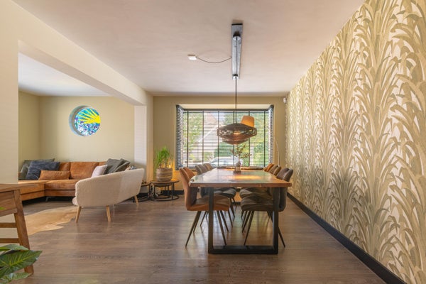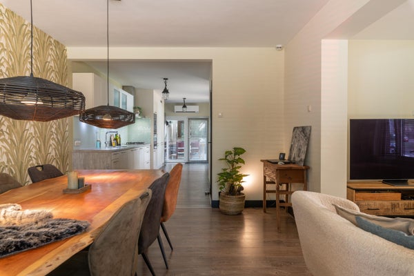 - De tussenwoning heeft een woonoppervlakte van 140 m² en beschikt over 8 kamers, waarvan 3 slaapkamers;