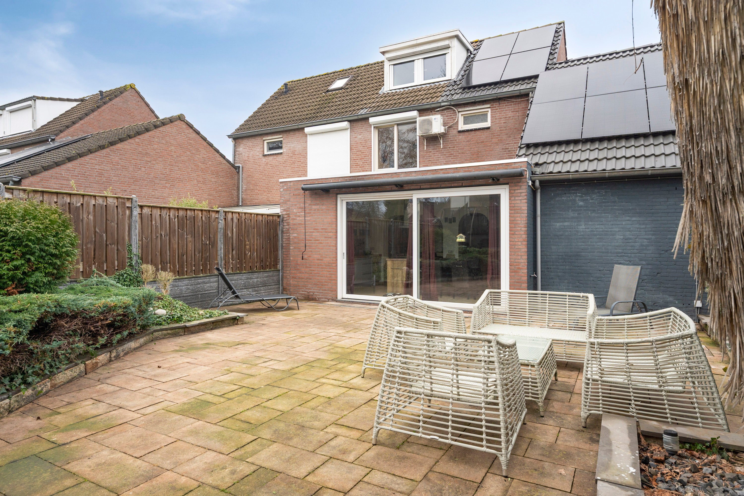 In een rustige woonomgeving staat deze 2-onder-1-kapwoning met een aanbouw. De woning beschikt over 120 m² woonoppervlakte en heeft 7 kamers, waaronder 4 slaapkamers. De indeling op de begane grond omvat een hal met toegang tot de woonkamer, die geniet van veel daglicht. De ruime woonkeuken is uitgerust met diverse inbouwapparatuur. Op de eerste verdieping zijn drie slaapkamers en een volledig betegelde badkamer met een ligbad. De zolder, bereikbaar via een vaste trap, biedt ruimte voor een werkplek en kan dienstdoen als 4e slaapkamer. De inpandige garage is toegankelijk en biedt plaats aan een auto. De tuin, zowel voor als achter, is volledig omheind en beschikt over een tuinhuis. Dit wonen is bijna energie-neutraal met zonnepanelen, een thuisbatterij en een warmtepompboiler.