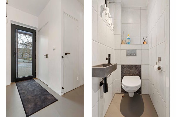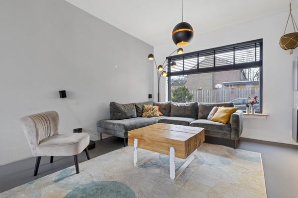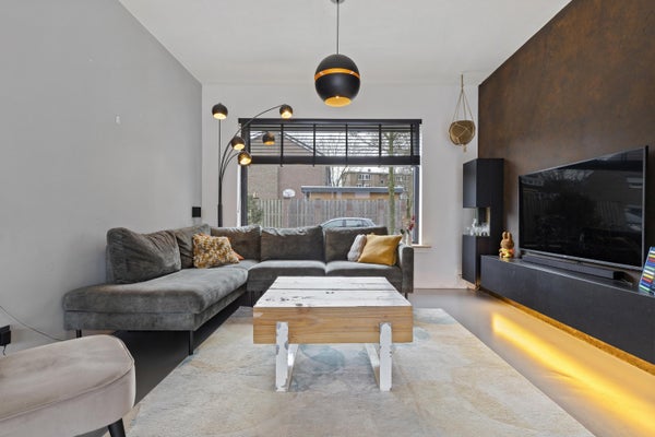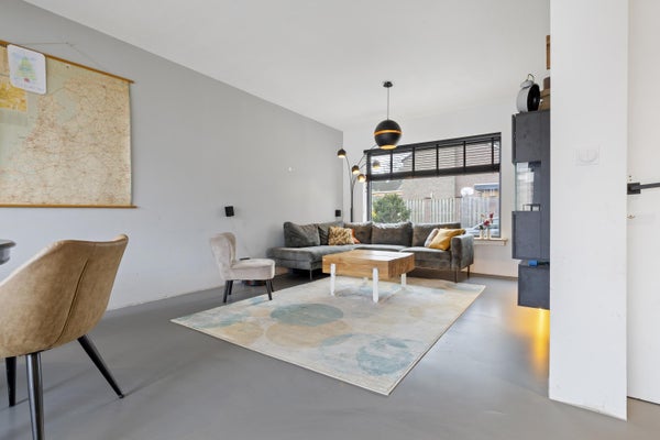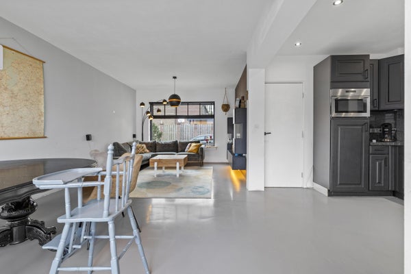 Via de overdekte entree komt u in de hal met modern toilet, voorzien van hangcloset en fonteintje. De lichte en sfeervolle woonkamer vormt het hart van de woning en biedt via een schuifpui direct toegang tot de achtertuin – ideaal voor spelende kinderen en lange zomeravonden.