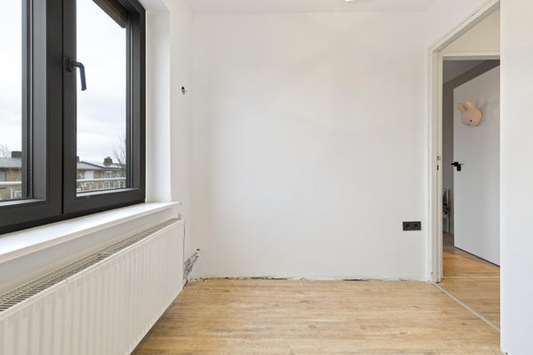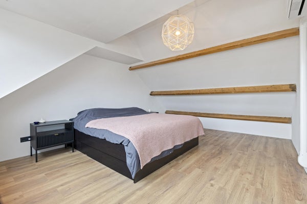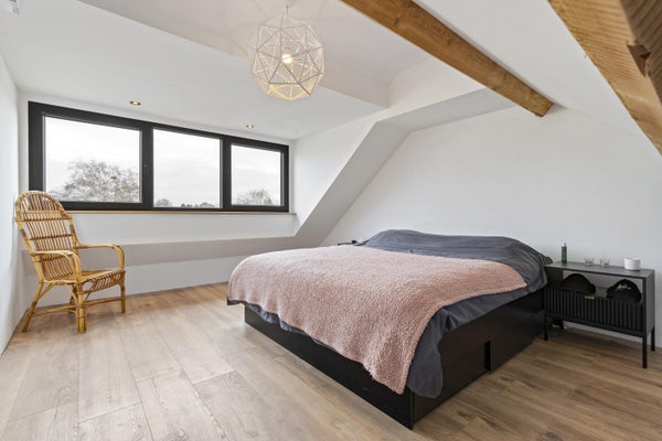 Via een vaste trap bereikt u de zolderverdieping met een volwaardige vierde slaapkamer. Dankzij de brede dakkapel is dit een lichte en veelzijdige ruimte, perfect als tienerkamer, thuiswerkplek of hobbyruimte.