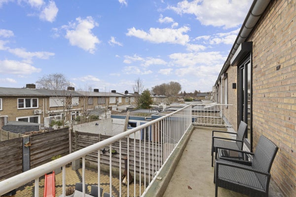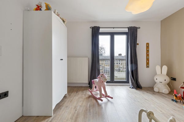 Op de eerste verdieping bevinden zich drie comfortabele slaapkamers, uitstekend geschikt als kinder-, werk- of logeerkamer. Eén van de slaapkamers aan de achterzijde beschikt over een balkon over de volledige breedte van de woning – een fijne extra buitenruimte.