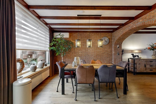 De royale woonkamer staat in open verbinding met de aanbouw en de leefkeuken. De keuken is geheel vernieuwd in 2023 en voorzien van een keramische kookplaat, koelkast, combi-oven, vaatwasser en afzuigkap.