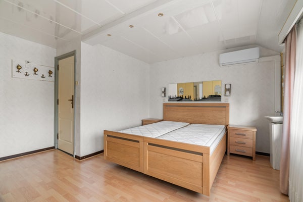 Slaapkamer (4.65mx3.03mx2.42m) met laminaatvloer en airco.