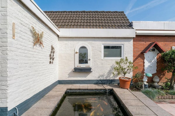 Halfvrijstaande woning met aanbouw, centrale verwarming, garageberging, aparte tuinberging, onderhoudsarme tuin.