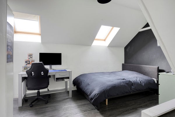 - De tussenwoning heeft een woonoppervlakte van 206 m² en beschikt over 9 kamers, waarvan 6 slaapkamers;