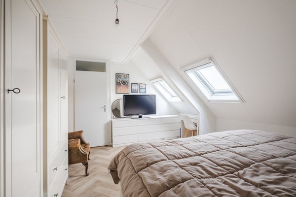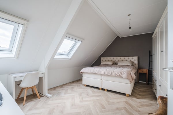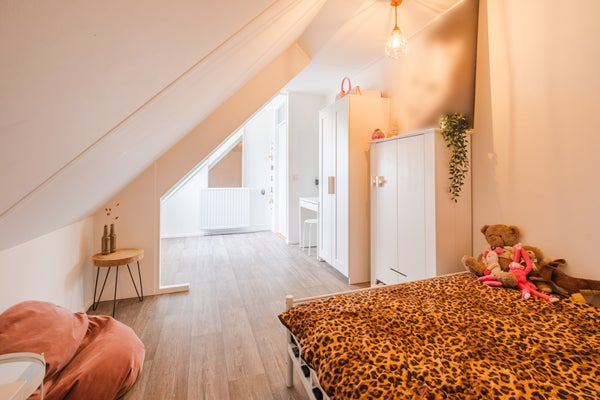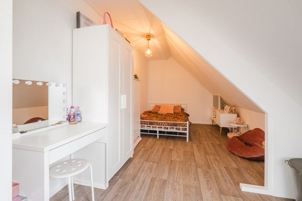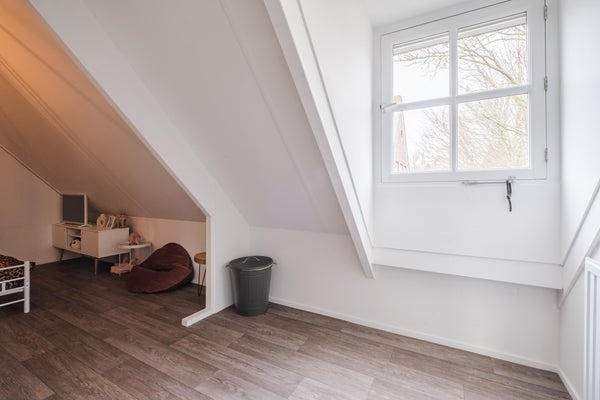 Op de 1e verdieping zijn twee lichte slaapkamers en een sanitaire ruimte aanwezig. De slaapkamers zijn voorzien van Velux dakramen en bieden voldoende ruimte. De woning is goed geïsoleerd en heeft energielabel B, terwijl de garage toegang biedt tot een parkeerplaats. De zorgvuldig onderhouden achtertuin is op het zuidoosten gelegen en biedt veel privacy.