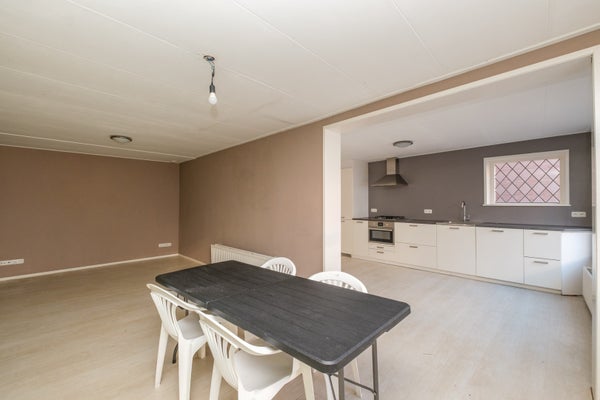 De ruime woonkamer vormt samen met de nette open keuken een fijne leefruimte. De keuken is uitgevoerd met een recht keukenblok en voorzien van inbouwapparatuur. Extra pluspunt: het dak is in het afgelopen jaar volledig vernieuwd en geïsoleerd, wat bijdraagt aan het wooncomfort en een betere energieprestatie.