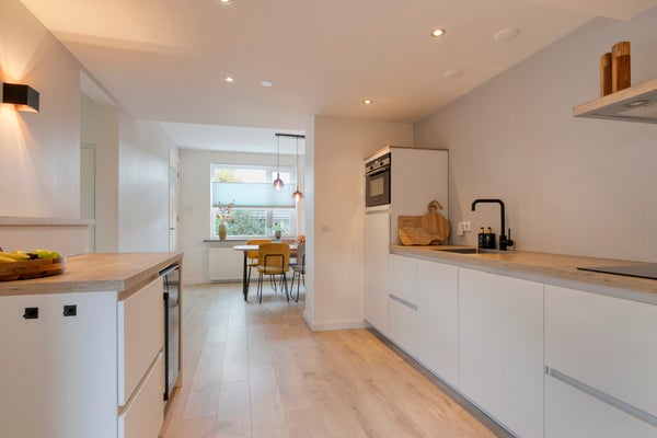 Instapklaar is deze sfeervolle, gemoderniseerde tussenwoning, gelegen in een rustige straat nabij het centrum van Gennep. Met een woonoppervlak van 95 m2 biedt de woning verrassend veel ruimte en heeft het een zonnige achtertuin met overdekt terras en achterom. In 2021 is de woning grotendeels verfrist met onder andere een nieuwe keuken en badkamer, openslaande deuren naar de tuin, en een lichte afwerking op de benedenverdieping. De begane grond beschikt over een hal, lichte woonkamer, ruime woonkeuken en een luxe badkamer. Op de eerste verdieping zijn er drie ruime slaapkamers, en een trap vanuit de kast leidt naar de zolderberging. Met een perceel van 109 m2 en energielabel F, is het na-isoleren goed mogelijk. Parkeren is openbaar.