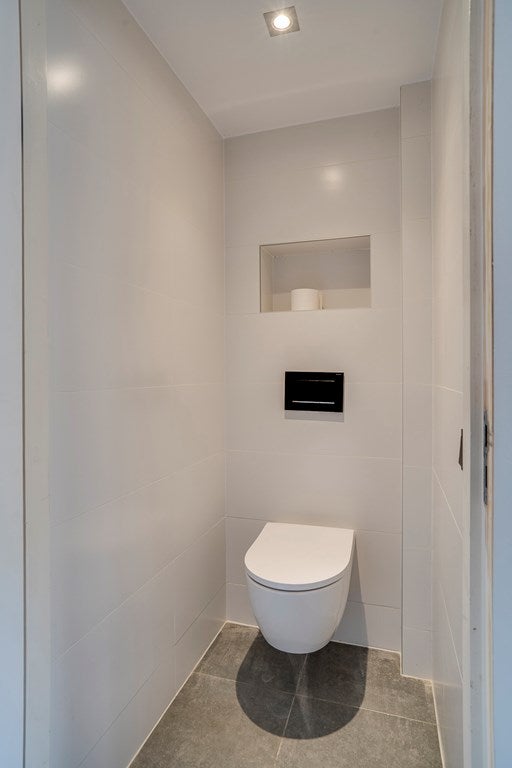 De wasruimte is v.v. een witgoed aansluiting. Moderne toiletruimte.