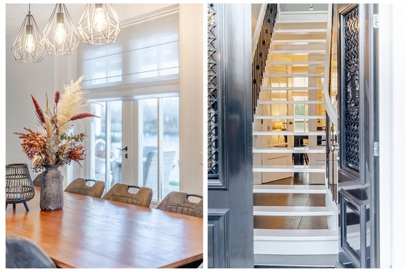 Aan het idyllische veenriviertje de Giessen staat een indrukwekkende, vrijstaande notariswoning uit 2015. Deze woning combineert klassieke elegantie met moderne luxe en heeft een vrije ligging aan vaarwater, evenals parkeermogelijkheden op eigen terrein. De statige architectuur met natuurstenen plinten en karakteristieke dakvormen straalt klasse uit. Binnen vind je een royale ontvangsthal met een centraal trap en vide, wat een ruime en licht gevoel geeft. De woning biedt bovendien vloerverwarming op beide verdiepingen en is uitgerust met 12 zonnepanelen voor lage energiekosten. Een ruime kelder van circa 24 m² en een grote zolder bieden extra bergruimte. Aan de achterzijde is een uniek terras van 40 m² op het zuiden, perfect voor ontspanning aan het water. Openbaar vervoer en steden als Gorinchem en Dordrecht zijn goed bereikbaar, waardoor deze woning een ideale locatie biedt voor rust met uitstekende voorzieningen.